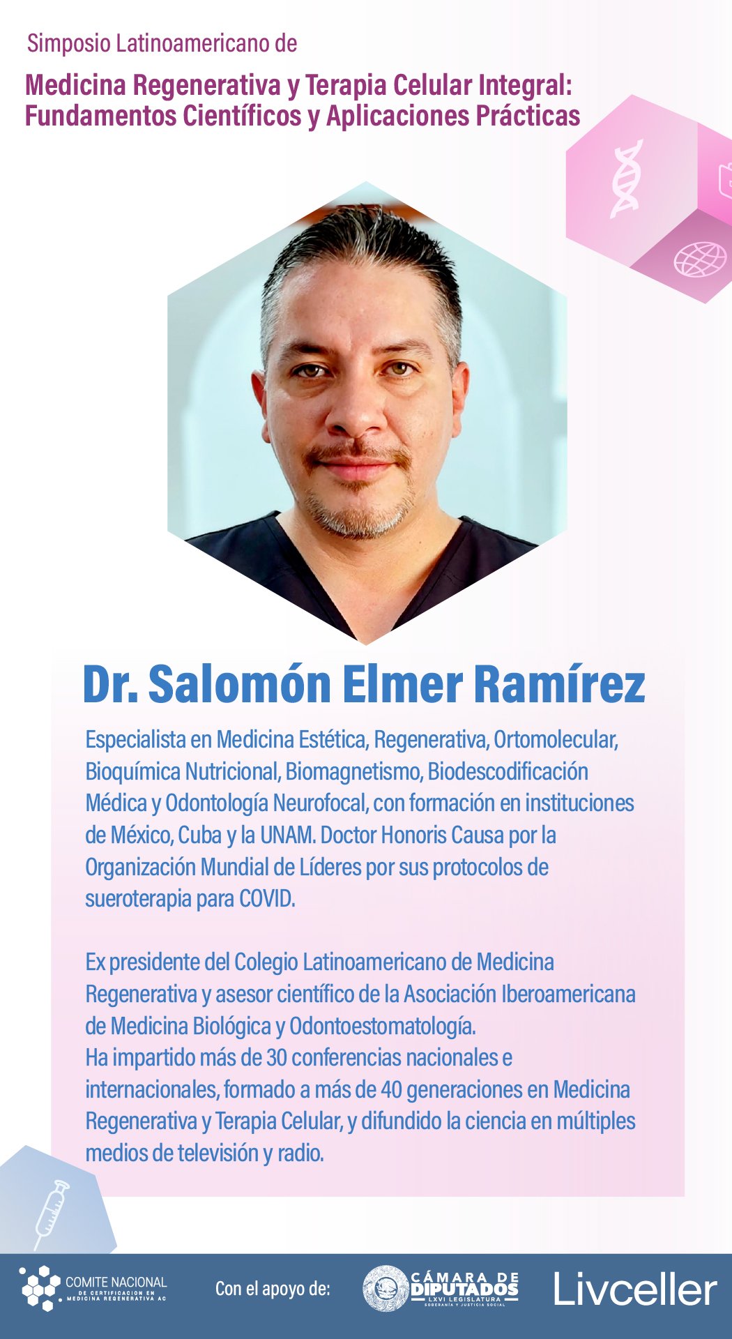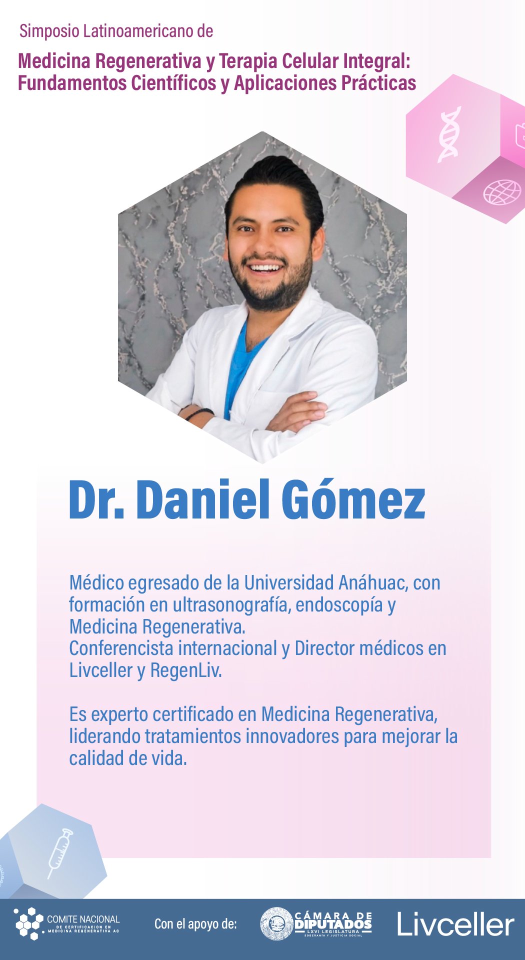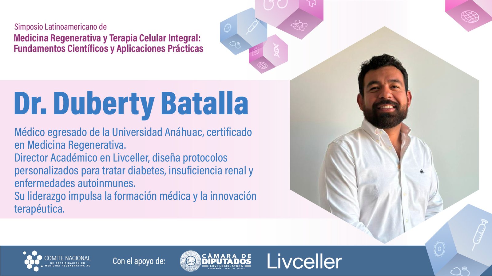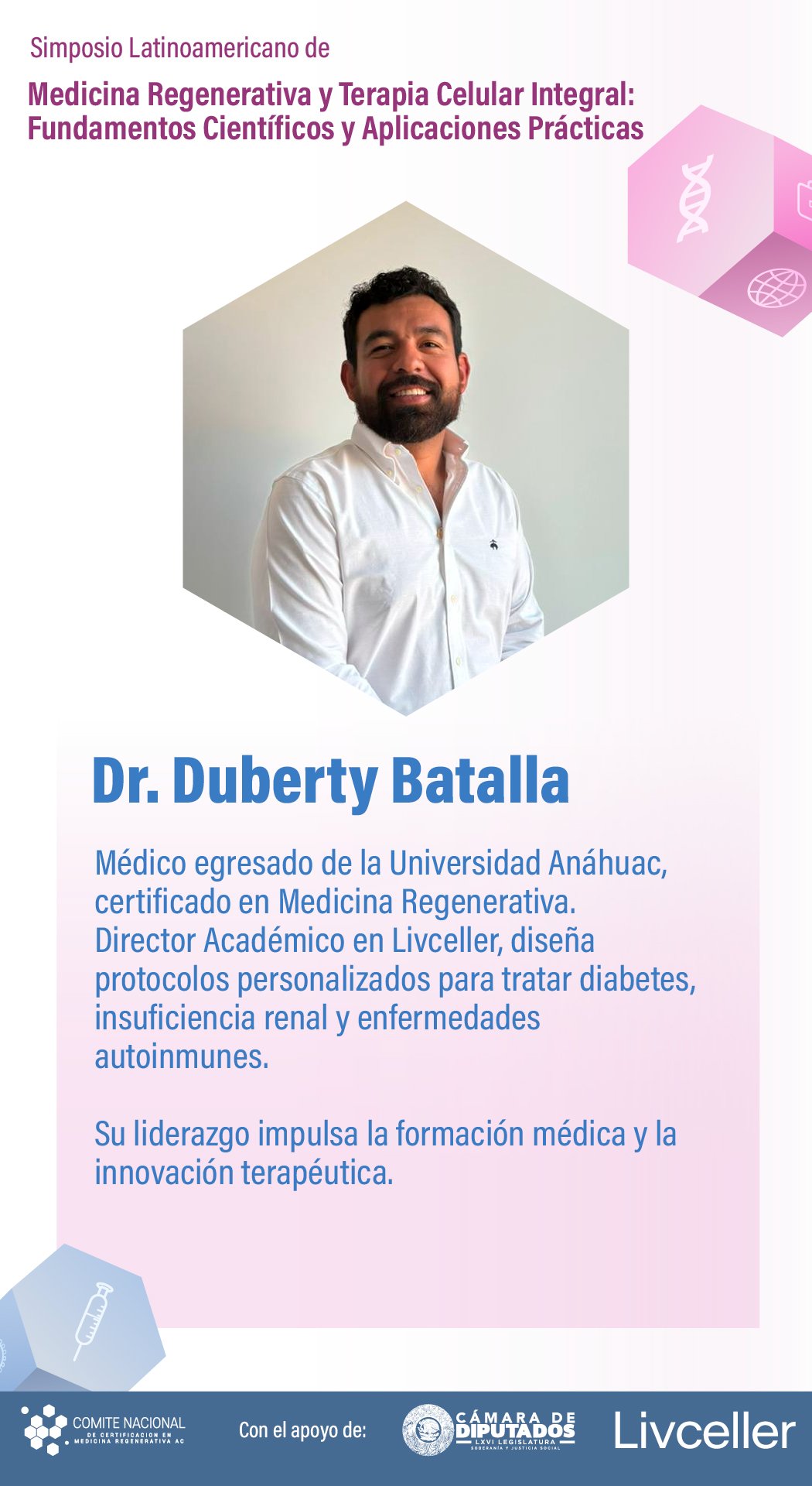 El simposio Medicina Regenerativa y Terapia Celular Integral: Fundamentos Científicos y Aplicaciones Prácticas ha sido diseñado para actualizar y profundizar los conocimientos de profesionales de la salud en un campo que transforma la práctica médica.