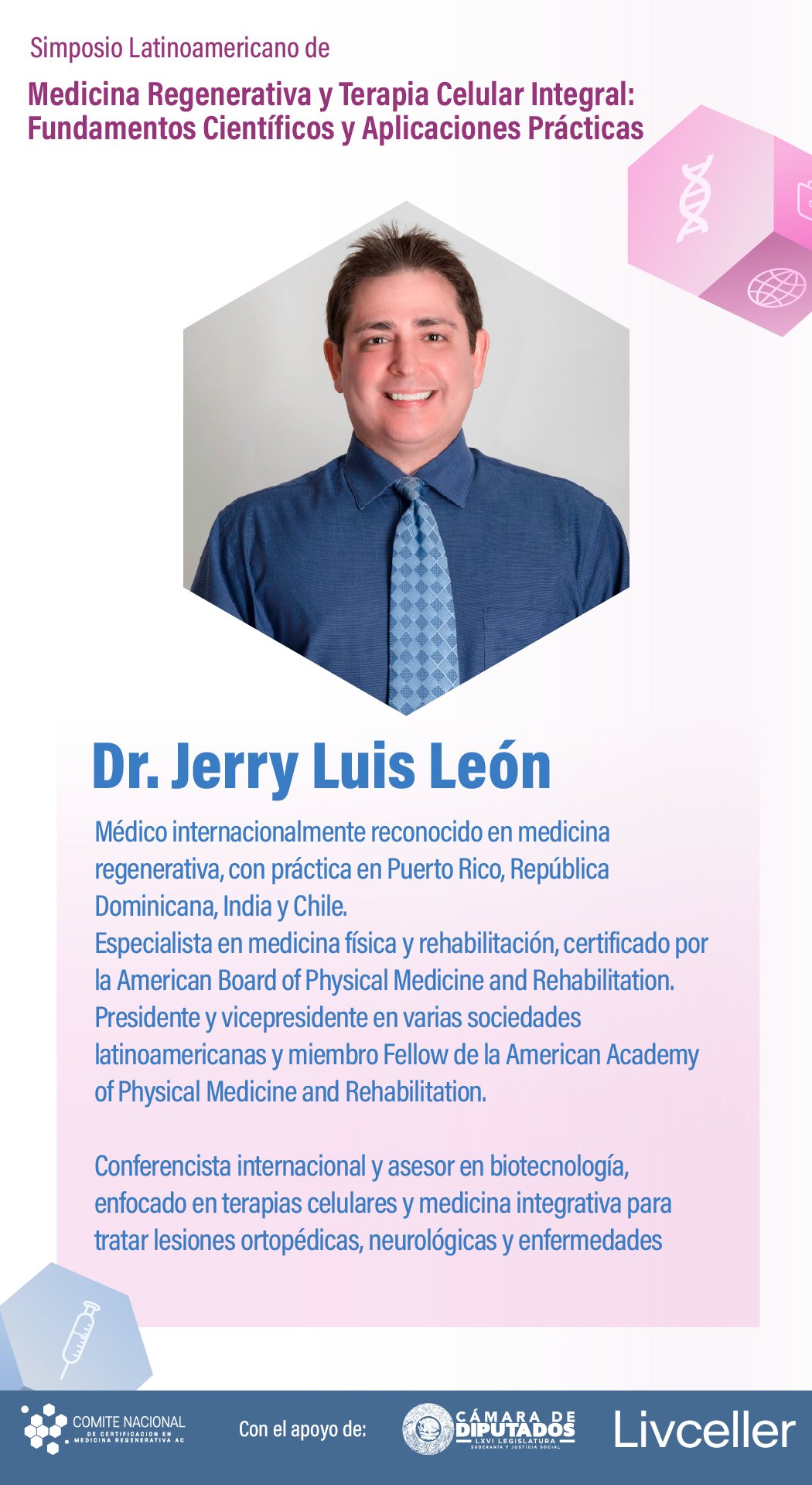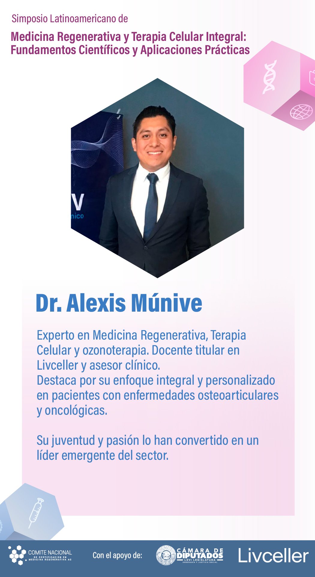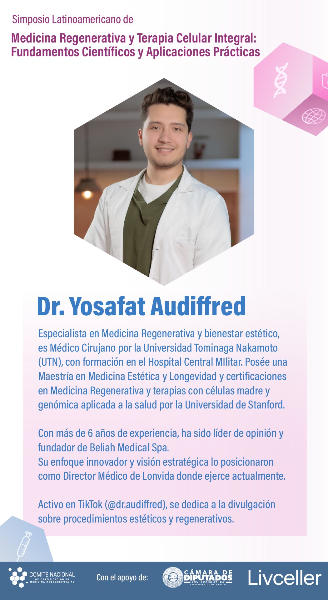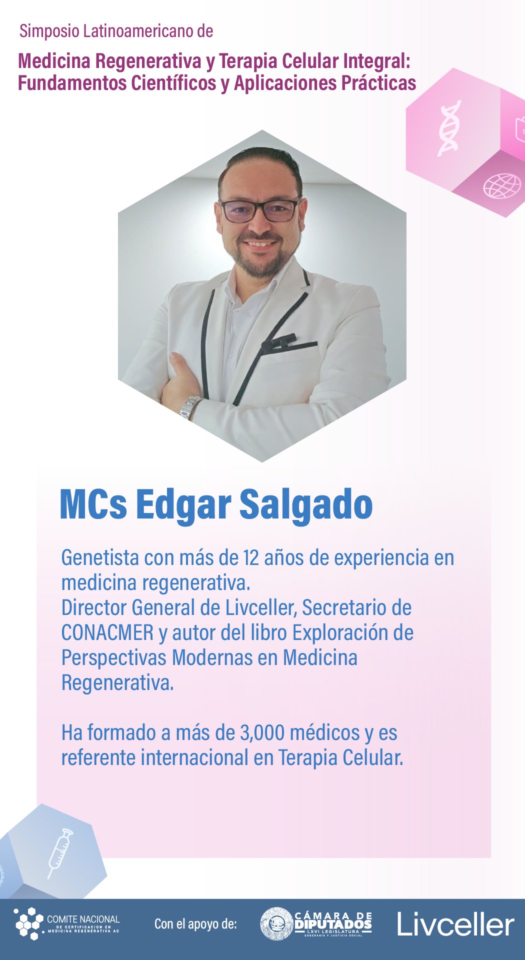 El simposio Medicina Regenerativa y Terapia Celular Integral: Fundamentos Científicos y Aplicaciones Prácticas ha sido diseñado para actualizar y profundizar los conocimientos de profesionales de la salud en un campo que transforma la práctica médica.